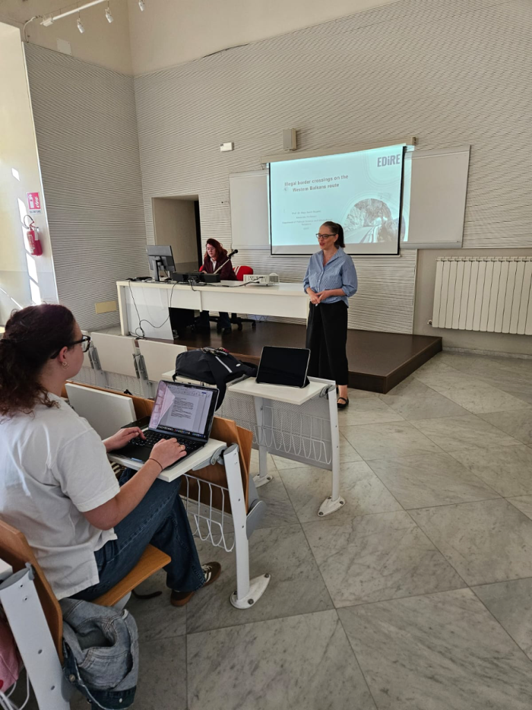 Highlights included a guided visit to Staglieno Cemetery, one of Genoa’s most significant heritage sites, which inspired discussion on how cultural spaces can serve as platforms for inclusion, memory, and community engagement. Dr. Savić-Bojanić also delivered an open lecture to students of Professor Pitino’s Immigration Law course titled “Illegal Border Crossings along the Western